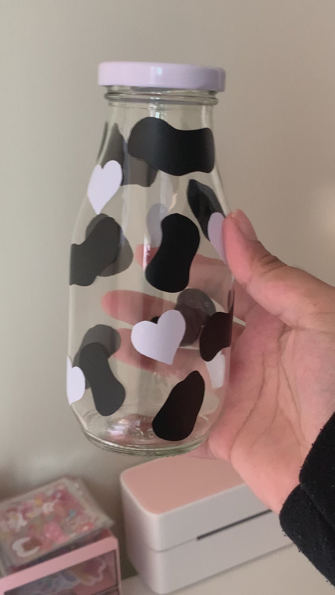 Cow Print with Hearts- Glass Milk Bottle